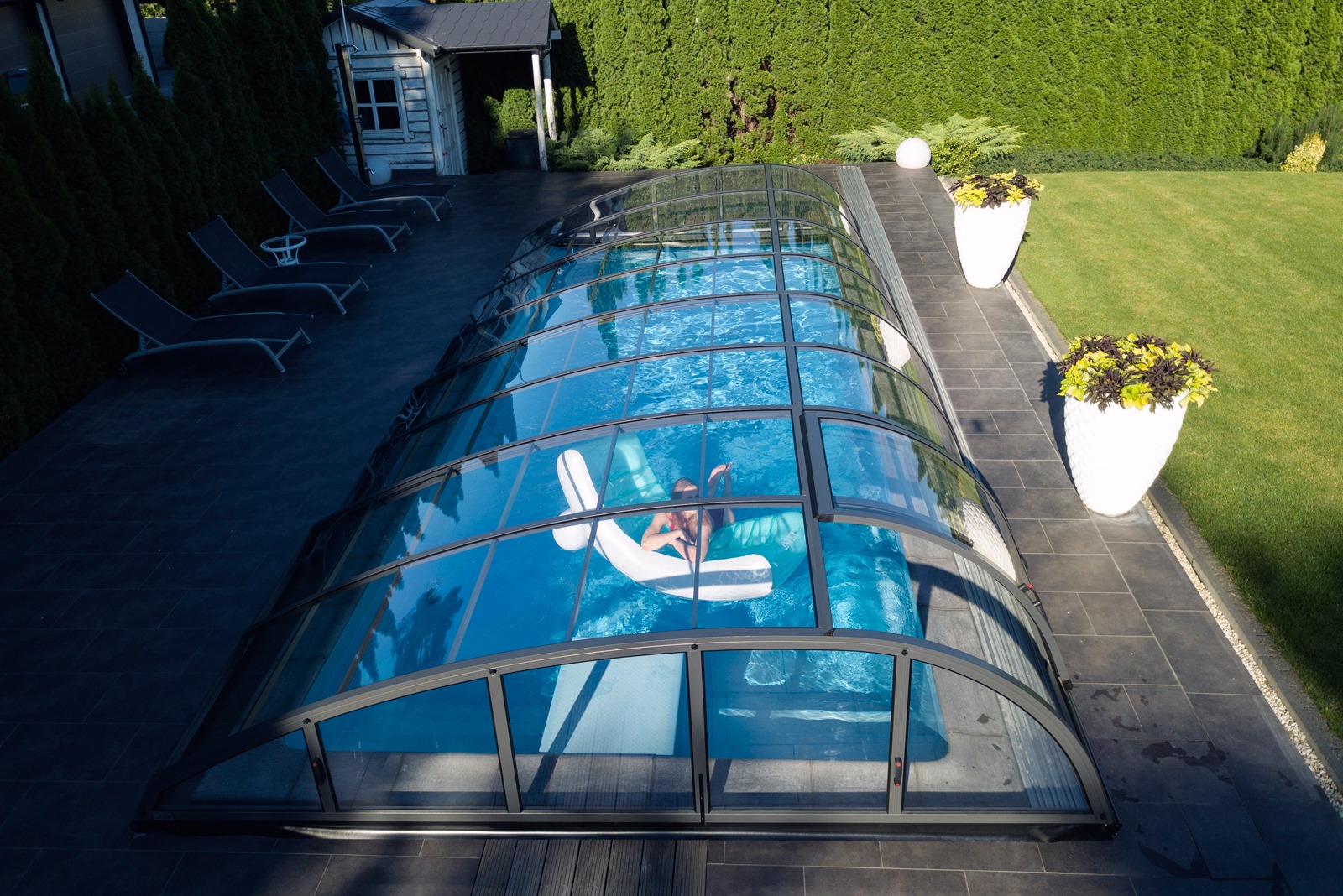 Bazénové zastřešení WAVE Model bazénového zastřešení WAVE se vyznačuje výjimečným tvarem, který kombinuje ostré linie s jemným obloukem a asymetrickým zvýšením na jedné straně. Navržen v souladu s moderními trendy. Jeho elegantní design nejen dodává atraktivitu, ale také lesk každé zahradě. Eclipse je skvělou volbou pro ty, kteří hledají spojení funkčnosti s moderním vzhledem.